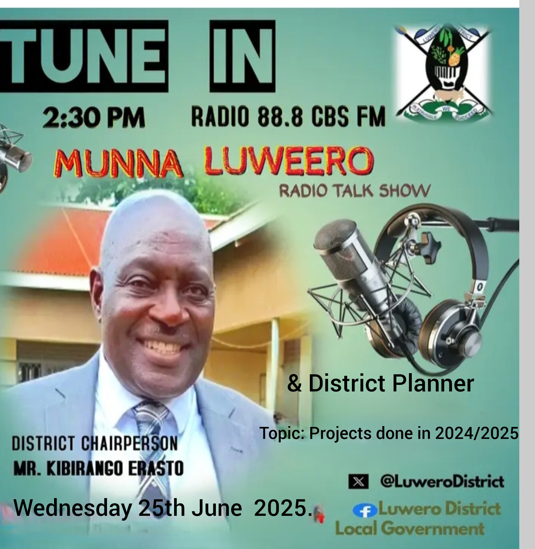 Don't miss Chairperson LCV Mr. Erasto Kibirango and District Planner Mr. Luzze Charles taking you through projects done in Financial year 2024/2025. Tune in 88.8CBS FM on Wednesday 25th JUNE.